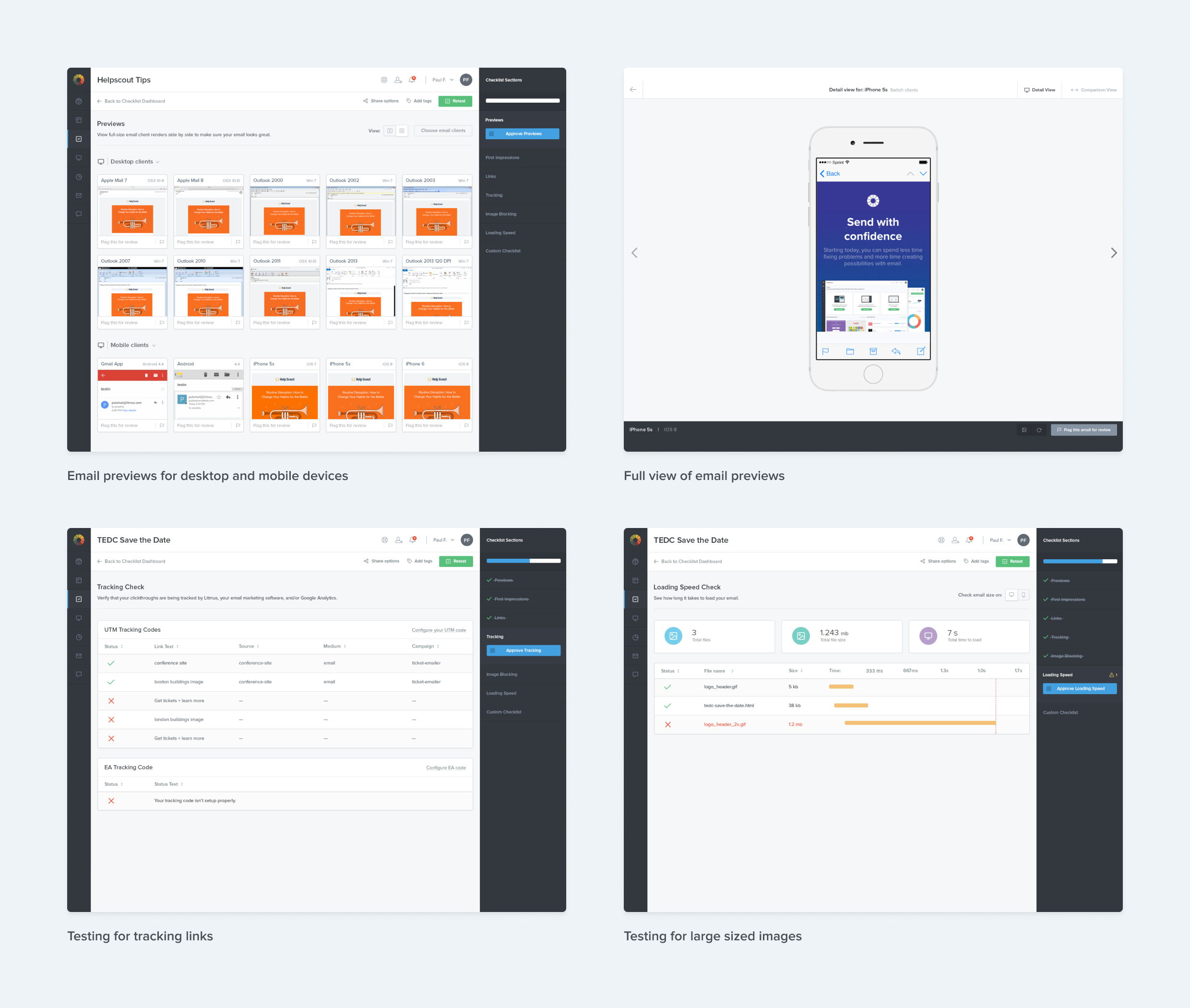Checklist was Litmus’ answer towards offering a QA solution, it was targeted specifically for email marketing managers who needed to run a final check before hitting the big frightening send button. Checklist would help capture critical bugs and advocated for a QA workflow, this was inline with a lot of our findings from prior research. Checklist also allowed users to tailor their workflow to add additional steps or requirements if needed.