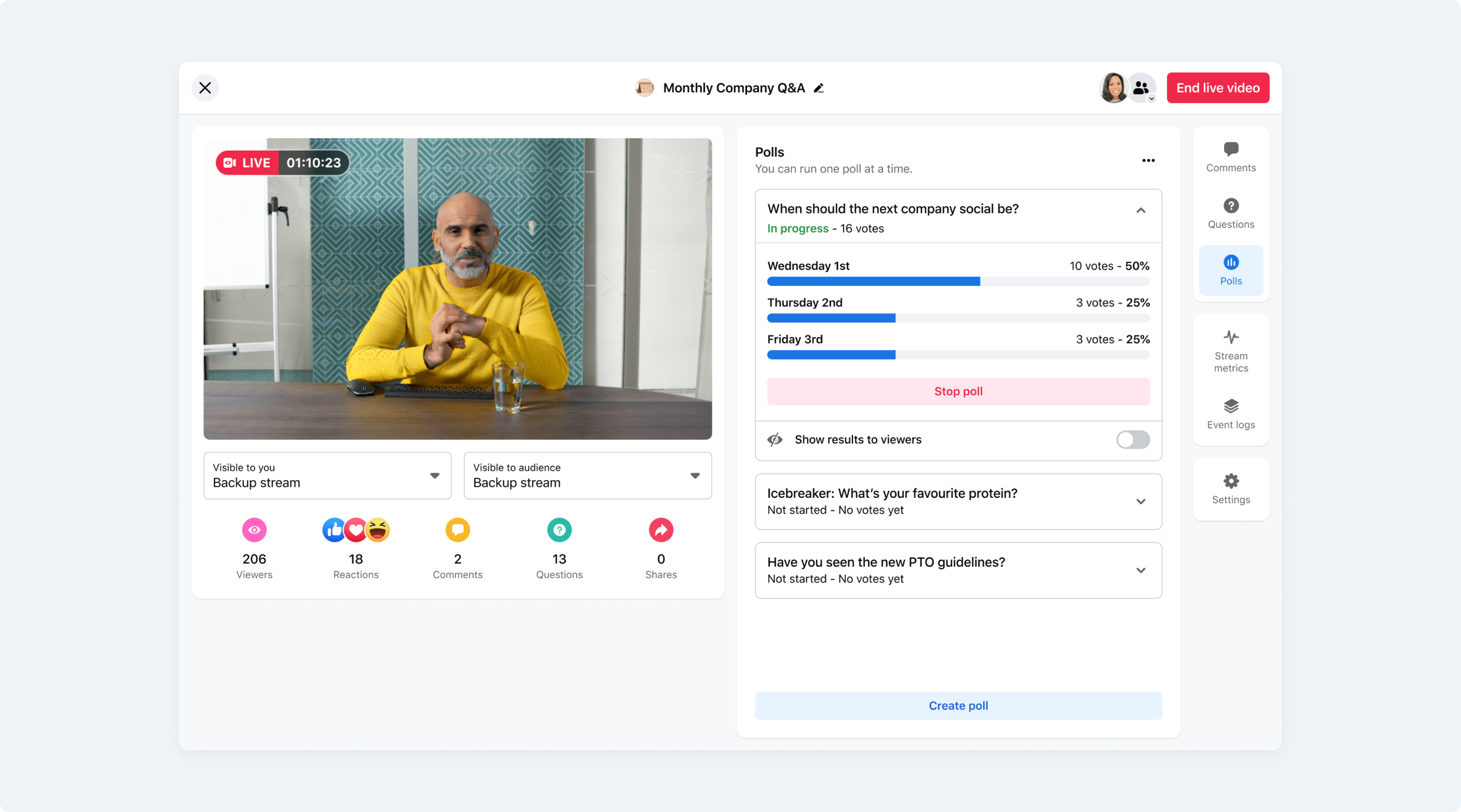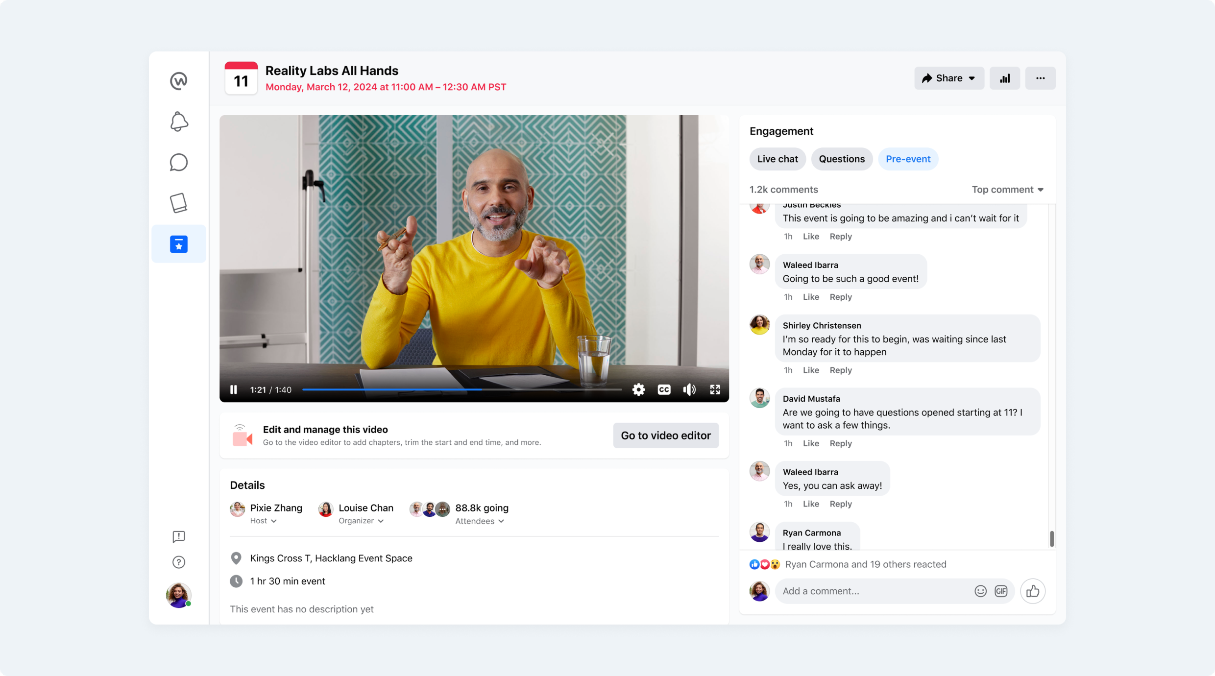 Workplace was at the centre for organisational communication for companies like Walmart, McDonalds, and Nestle to name a few. While a lot of the organisational communication was posts based, Workplace needed a more durable way to do organisational broadcasts such as 'All Hands' or company wide 'Q&As', this was crucial for many companies who had large front-line roles.